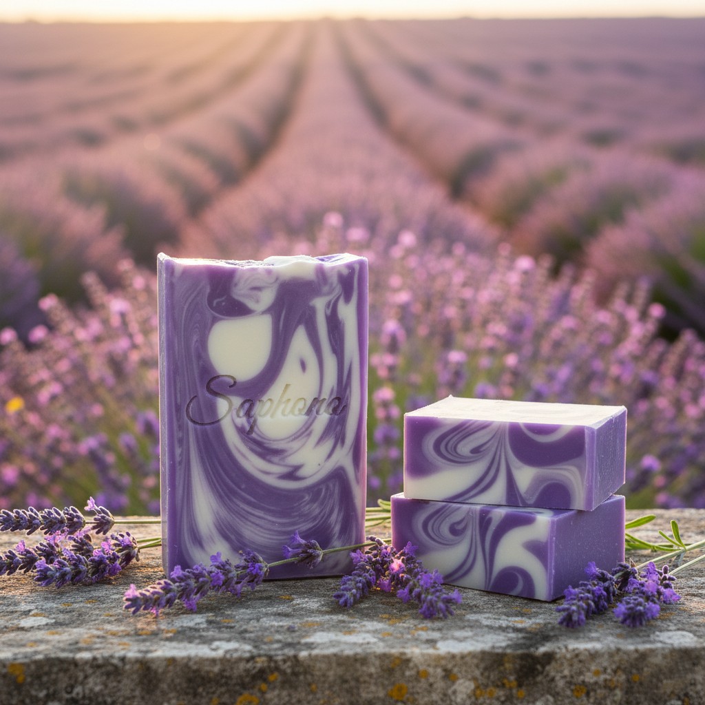 A soap crafted with lavender oil, olive oil, coconut oil, and castor oil offers a luxurious and nourishing experience for the skin. The combination of these natural ingredients brings forth several benefits: