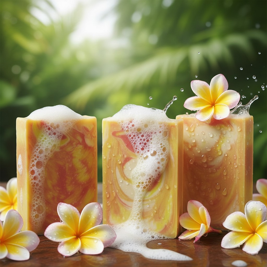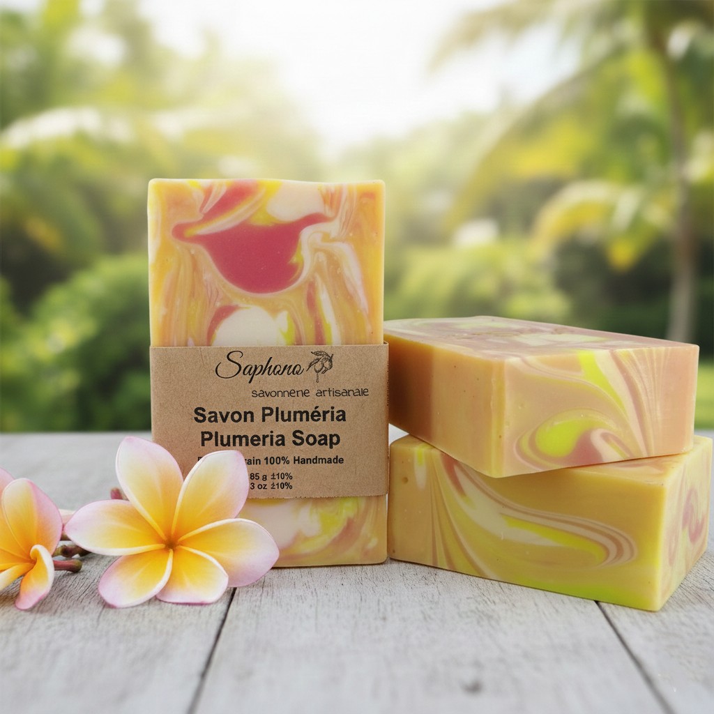 Soap infused with plumeria oil brings together the luscious fragrance of the tropical plumeria flower with the cleansing properties of a gentle soap. Plumeria oil, extracted from the beautiful and aromatic blossoms, adds a delicate yet captivating scent reminiscent of exotic gardens and island breezes.