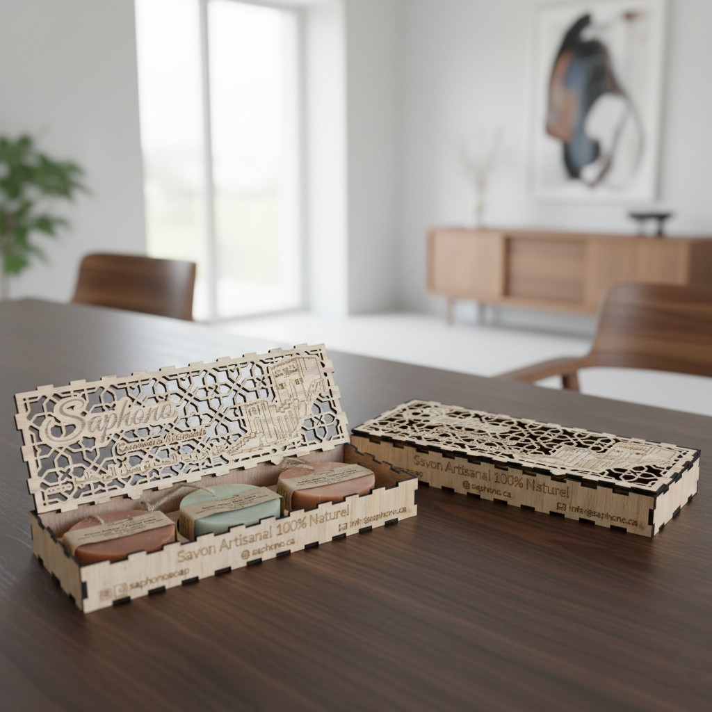 Each bar is slow-cured and infused with the timeless scents of the Orient—Amber, Incense, and Musk—all presented in a beautiful, locally sourced or inspired engraved wooden box.