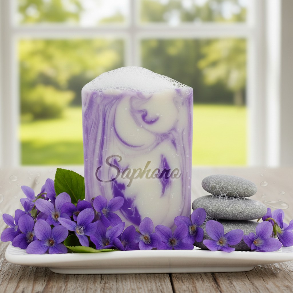 “Indulge in the sublime fusion of nature’s finest essences with our artisanal soap blend. Imbued with the delicate essence of violet oil, this soap exudes a calming and floral aroma that gently envelopes your senses, leaving you feeling refreshed and rejuvenated.